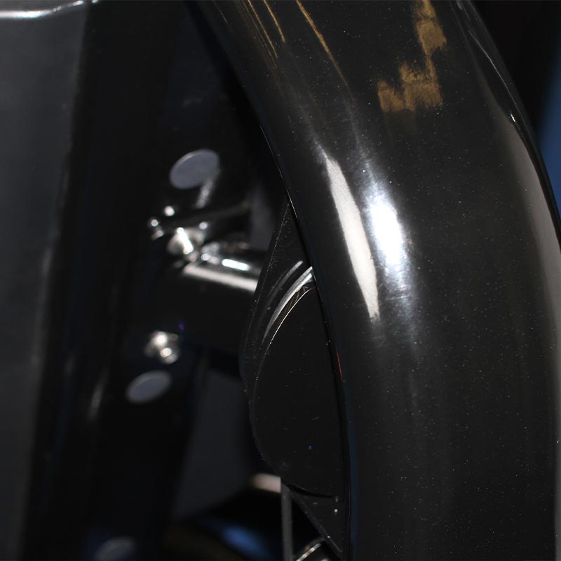 Position und gewährleistet so eine optimale Positionierung für Benutzer jeder Größe. Kleinere Benutzer können den Boden über einen erhöhten Sitz erreichen